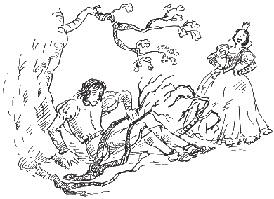 Но едва принц Теодор опустился на зелёную траву, страшная дрожь пробежала по корявому стволу дуба. Закачались ветви. Принц Теодор вскочил… Но поздно! Из-под земли показались кривые могучие корни. Они мигом оплели руки и ноги принца Теодора, сжали его тело.