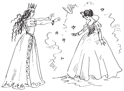 Королева Морганда подошла к окну и спряталась за занавесом. Не дыша, прислушивалась королева к печальным жалобам белки, стараясь не пропустить ни словечка. И её охватила зловещая радость.