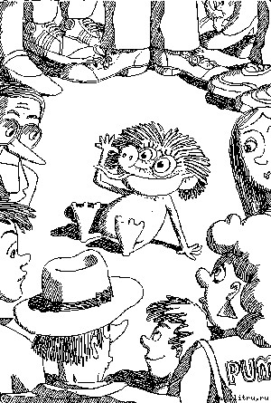 Самый старший наш учитель, Наш губитель и мучитель, Наш гонитель Стуккенкрик Спрятал лысину в парик!Затем существо плюхнулось на тротуар, сложило лапки на брюшке и снова принялось нахально оглядывать толпу.
