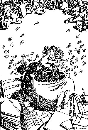 В одной из комнат он увидел своего хозяина. Но сначала он увидел дюжины две пустых коробок, все содержимое которых было высыпано на пол. На диване стопками громоздились книги. На письменном столе стояли стулья. Люстра, снятая с потолка, лежала на шкафу рядом с грудой чашек и блюдец. Большой обеденный стол был завален постельным бельем, а посреди груды белья восседал владелец фирмы и так рьяно рылся в своей подушке, что пух и перья летели в разные стороны.