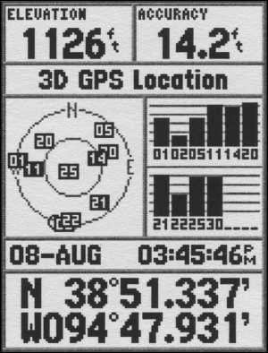 Как только приемник обнаружит сигнал от спутника, на левом поле появится крестик с номером спутника, а на правом – обведенная черным контуром белая полоса. Это значит, что идет прием информации от спутника и синхронизация часов приемника. Как только эта процедура закончится, и навигатор возьмет спутник на сопровождение, вместо креста на левом поле появится черный квадратик с белом крестом внутри, а на правом поле белая оконтуренная полоса станет черной. Аналогичным образом обнаружится второй, третий и остальные доступные приему спутники. Как только начнется уверенный прием трех спутников, на экране приемника появятся координаты нашей позиции, а при приеме сигналов от четырех и более спутников еще и значение высоты над уровнем моря. Время инициализации может составлять 5–10 мин.