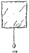 Яйцо с секретом подготавливают следующим образом. В обычном курином яйце проделывают небольшое отверстие, через которое выпивают его содержимое. Затем надо взять черную нитку длиной 30 см, привязать к ней кусочек спички и просунуть его поглубже внутрь яйца через отверстие. Другой конец нитки крепко пришивается к середине одной из сторон платка (рис. 170). Этот платок следует заранее поместить в цилиндр или коробку.