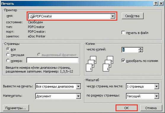 Процесс создания PDF-документа не сложен: в списке устройств диалогового окна печати файла (Ctrl+P) выбирается принтер PDF Creator ( рис. 8 )