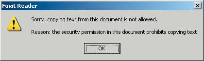 Увы, оба продукта бессильны перед запретом, наложенным авторами PDF-публикаций на копирование содержимого документа. В этом случае нам придется созерцать «жизнерадостное» окно ( рис. 4 ).
