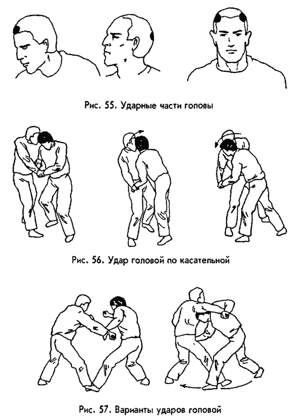 ГОЛОВА — начало всему Ею, конечно, надо в первую очередь думать. Но если мыслительный процесс не смог избавить вас от необходимости драться, то думать дальше некогда. Остается только одно — использовать свою голову в качестве самой большой и самой твердой «кувалды» тела, чтобы как можно сильнее долбануть ею противника.