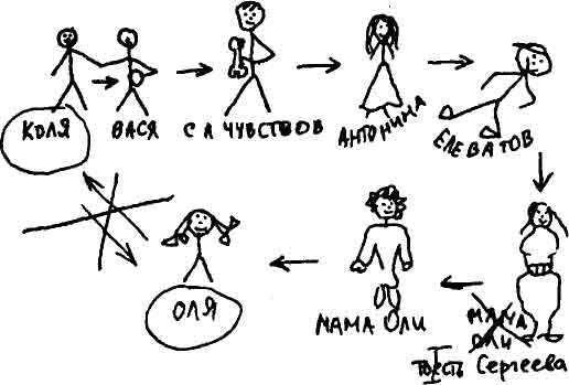 Если бы С. А. Чувствов не только дарил сыну подарки и ругал его за двойки, а интересовался бы его личной жизнью, он мог бы узнать про этот случай — и справедливо осудил бы сына, и, как мудрый человек, посоветовал бы подружиться с обиженным Колей. И Вася подружился бы с Колей, а вся соль в том, что сестра А. С. Чувствова Антонина была женой Петра Андреевича Елеватова, который был другом Ирины Кузьминичны Сергеевой, подруги мамы Оли, с которой она делилась подробностями своей жизни. То есть понимаете, как могло бы быть?