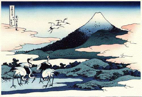 Фудзи за лавовыми полями и клочьями тумана, движущиеся облака. Летящие птицы и птицы на земле. Этот вид, по крайней мере, похож. Я опираюсь на посох и смотрю на него. Впечатление как от музыки: я приобретаю силу способом, который не могу описать.
