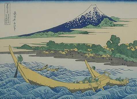Я поехала на лодке, чтобы посмотреть на берег и склоны Фудзи. Я все еще чувствую себя выздоравливающей. Стоит ясный день, с моря дует холодный ветер. Лодка раскачивается на небольших волнах, пока рыбак и его сын, которым я заплатила, чтобы иметь возможность воспользоваться их лодкой, направляют ее по моему требованию так, чтобы дать мне возможность найти точку обзора, наиболее приближенную к картине. Так много из бытовой архитектуры этих мест представляют мне носы кораблей. Расхождение эволюции культуры, где сообщение представляет собой среду? Море – это жизнь? Добывая пропитание под волнами, мы всегда на море?