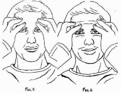 1 Примите исходное положение (см. с. 33). Поместите пальцы на лбу параллельно самой высокой точке (см. рис. 5). Теперь, надавливая пальцами на лоб, двигайте их в направлении бровей. Задержитесь в этом положении, посмотрите вверх на макушку. Надавливая пальцами вниз, пытайтесь высоко поднять брови. Расслабьтесь. Повторите эти движения пять раз.