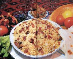Дело просто в том, что однажды я ехал на машине по Ирану и остановился в каком-то городке – купить миндаль и фисташки, которые в Иране очень вкусны. Спросил у прохожего, где лучший магазин. А мне ответили: «Ага-и! Господин хороший! Вы ведь через город Керман ехали? Керман – родина миндаля! Гам надо было покупать миндаль». Эти слова не выходили у меня из головы, когда я готовил этот плов. Вот я и подумал: если бы люди, живущие в Кермане, умели готовить узбекский плов, то готовили бы они его непременно с миндалем. Ну и рис наверняка бы использовали не узбекский, а тот, к которому привыкли, – бас-мати.