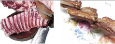 Ребрышки от свежей, молодой и покрытой жирком баранины разделаем кусочками. Грамм 250 – 300 лука порежем тонкими кольцами, добавим к нему соли и разомнем руками, чтобы лук начал выделять сок. Мясо густо присыплем зирой и соединим с луком, перемешав все несколько раз. Оставим мариноваться на три-четыре часа.