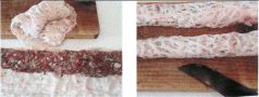 Теперь, вооружившисьтерпением, вымешиваем фарш – до полной его однородности. Проверить, хорош ли наш фарш, можно следующим способом: отделив пригоршню фарша и слепив из него котлету, надо с силой бросить его на дно миски, в которой его вымешивали. Фарш должен расползтись по дну, но не растрескаться и не разлететься в разные стороны. С приобретением некоторого опыта вы легко научитесь распознавать необходимую консистенцию фарша – когда он уже достаточно липкий, но еще не начал пускать сок. Это шесть.