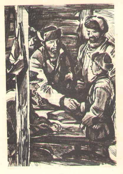 Микола ушел к соседнему дому. Ребятишки, крутившиеся во дворе, высыпали за плетень, окружили незнакомых. Будто ждали от них чего-то. Бледными были ребятишки, худенькими, заморенными. Видать, давно досыта не ели. Сердце Пантелея Романовича сжалось. Эх, дать им какого гостинца! Он даже пошарил по пустым карманам и вздохнул.