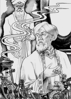 То, что этот человек отличается столь разнообразными познаниями, изрядно удивило меня. Я долго расспрашивал его то об одном, то о другом механизме или приспособлении и поражался его подробным ответам, из которых следовало, что владелец лавки весьма сведущ в астрологии, геомантии, алгебре, медицине и других науках. Мы беседовали больше часа, и мое уважение и восхищение расцветало, точно роза, согретая утренними лучами солнца, пока Башарат не упомянул о своих алхимических опытах.