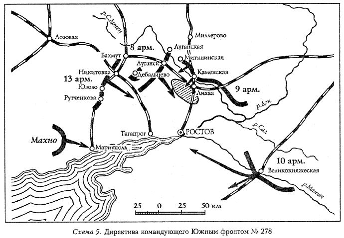 Схема 11. Группировка «добровольцев» на центральном участке фронта