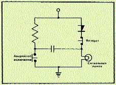 – С.Л.) выбрано большим V0 и меньшим 2*V0. В предаварийных условиях D1 находится в запертом состоянии. В случае возникновения кратковременных или устойчивых аварийных условий нормально открытые аварийные контакты замыкаются (механическим, электромеханическим или электронным путем). Это замыкание приводит к мгновенному заземлению одной из пластин С1, в результате чего напряжение, управляющее переключением D1, поднимается выше Vs . Диод D1 переключается в проводящее состояние, и напряжение питания подается на сигнальную лампу. Ток, при котором диод D1 сохраняет устойчивое проводящее состояние, выбран меньшим тока сигнальной лампы. Когда аварийные условия устраняются, нормально закрытые контакты возврата размыкаются и схема возвращается в исходное состояние.