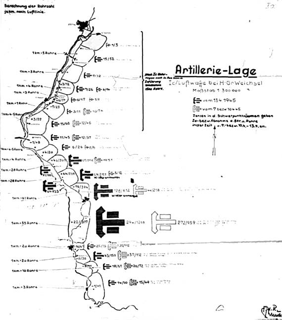 Еще одним ответом на отвод обороняющихся частей противника назад стало увеличение глубины поражения обороны противника в ходе артиллерийской подготовки. Ее продолжительность была определена в 20–30 минут на глубину до 10–12 км, а полосе 8-й гвардейской армии – до 17–19 км. Для нанесения короткого, но мощного удара на 175-километровом фронте плацдарма было сосредоточено 14038 орудий и установок реактивной артиллерии (без учета артиллерии двух танковых армий и 3-й армии, а также 45-мм и 57-мм противотанковых пушек). Только ствольной артиллерии (без 45-мм и 57-мм противотанковых орудий и зениток) было собрано 12 629 единиц. На направлении главного удара фронта в 44-километровой полосе Гюстербизе, Подельциг средняя плотность достигала 189 стволов и установок реактивной артиллерии на 1 км фронта. На направлении главного удара армий плотность была еще выше: 286 на 1 км в 5-й ударной армии, 270 на 1 км в 47-й армии, 268 на 1 км в 8-й гв. армии, 253 на 1 км в 69-й армии и 266 на 1 км в 3-й ударной армии. Только для обеспечения работы артиллерии в первый день операции был запланирован расход 1 147 659 снарядов и мин, 49940 реактивных снарядов. На каждый стрелковый полк в армиях, действующих на направлении главного удара, приходилось от 1,4 до 2,4 артиллерийских полков.