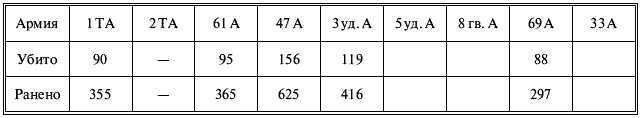 Потери 33-й армии с 15 по 20 апреля составили 1687 человек убитыми, 7213 ранеными, 128 пропавшими без вести, 13 небоевые потери и 206 заболевшими [227] . Общие потери техники 1-го Белорусского фронта 19 апреля составили 105 танков и САУ сгоревшими, 76 танков и САУ подбитыми и еще 8 выведенными из строя по другим причинам [228] . В расчете на подбитые и сгоревшие это был день наибольших потерь в бронетехнике за время наступления.