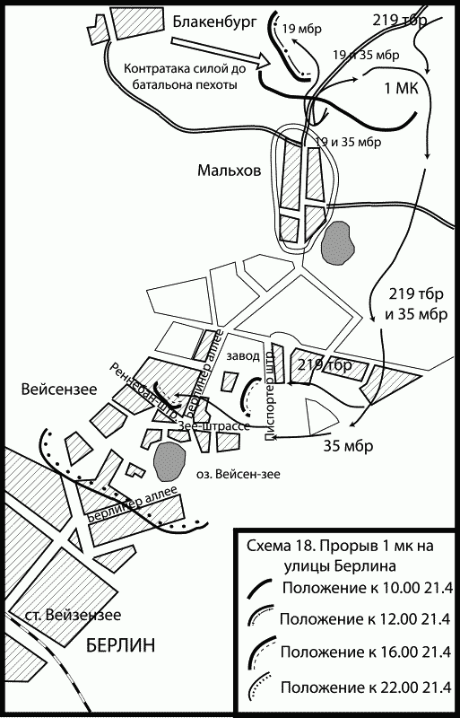 3-й ударной армии – наступать в общем направлении Претцель, Вернойхе, Бланкенбург (в северо-восточной части Берлина), Тегель (в северо-западной части Берлина).