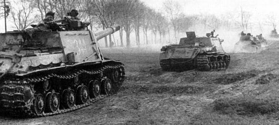 После прорыва через Шпрее был снят с позиций 57-й гв. отдельный тяжелый танковый полк. Немногочисленные тяжелые танки ИС-2 3-й гв. танковой армии были не на острие наступления, а занимали позиции далеко позади передовых частей – в засадах к югу от Форста. 18 апреля в 24.00 полк ИСов снялся с позиций и к 7.00 19 апреля занял оборону с целью не допустить прорыва противника к переправам через Шпрее. Нельзя не отметить этого достаточно своеобразного решения П.C. Рыбалко: в качестве противотанкового резерва были использованы не СУ-100 и даже не ИСУ-122, а тяжелые танки ИС-2.