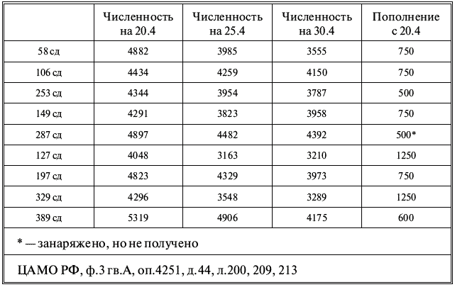 Изменение численности дивизий 3-й гвардейской армии с 20 по 30 апреля 1945 г.