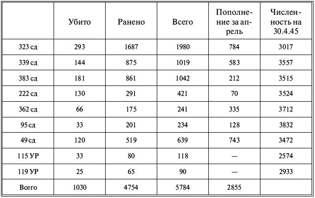 Потери войск 69-й армии с 20 по 30 апреля 1945 г.