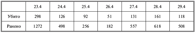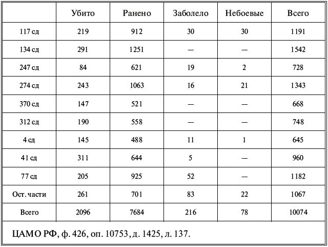Динамику потерь 69-й армии можно видеть по следующей таблице. Как мы видим, 23 апреля еще наблюдалось упорное сопротивление, задерживавшее армию В.Я. Колпакчи в течение первых дней наступления. Затем потери снизились, так как 69-я армия перешла к преследованию отходящего противника.