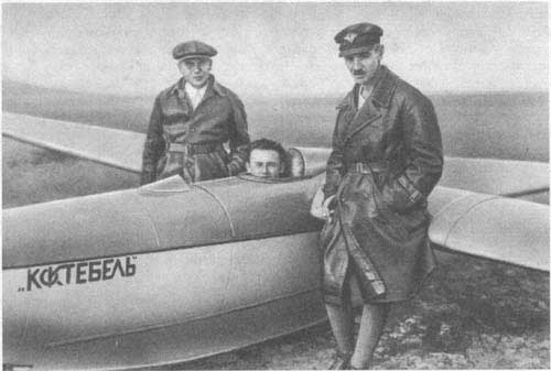 Планер «Коктебель» конструкции С.Н. Люшина и С.П. Королева везут на вершину горы Клементьева