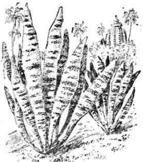 На окнах рядом с алоэ и кактусами можно иногда увидеть странное растение с твёрдыми, торчащими прямо из земли листьями. Листья растут из ползучего корневища. Тёмные и светлые поперечные полосы на этих кожистых листьях напоминают чешую рыбы. И называют обычно это растение: «щучий хвост». Научное же название его — сансевьера (Sanseviera zeylanica).