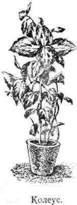 С плектрантусом и колеусом можно поставить много интересных опытов, таких же, какие ставил уже читатель с бальзамином и поставит в дальнейшем с пеларгонией. На плектрантусе хорошо получаются фотографии на листьях; из листьев можно добыть духи с мятным запахом. В прозрачных стеблях колеуса хорошо видно передвижение подкрашенной воды. Пёстрые листья изменяют окраску, с ними хорошо выходит опыт и с испарением воды листьями.