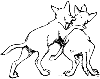 Вообще же антагонистические игры псовых состоят из прыжков-наскоков друг на друга, преследований (с типичной сменой ролей) и собственно борьбы, при которой пускаются в ход не только зубы, но в большей степени и передние лапы. Партнеры толкают, давят, валят и катают друг друга, а схватившись зубами, треплют друг друга. Иногда в игровых движениях участвуют также задние конечности или все четыре лапы одновременно, особенно у лежащего на спине щенка.