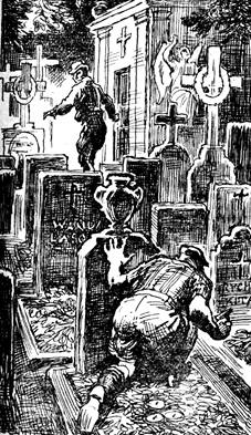 Сумерки почти мгновенно сменились густым мраком. Ночь стерла контуры деревьев и кустов. И лишь склеп выделялся из тьмы светлым пятном. Кое-где сквозь заросли пробивались далекие огоньки деревни. Потом погасли и они… Не отрывая взгляда от скорбного ангела, Рудзик напряженно вслушивался в тревожные шорохи ночи. Порой ему казалось, что где-то поблизости раздаются шаги. Он до боли в глазах всматривался в темноту, но шаги стихали. Звуки замирали, растворяясь в беспокойном шелесте листвы. Поднялся ветер. Вдруг рядом с ним что-то промчалось. Что-то мягкое коснулось его лица. Он вскочил, едва не вскрикнул. Взмахнул рукой – ничего, пусто. «Привидение?» Ему стало не по себе. Снова между деревьями что-то мелькнуло. Он напряг зрение. Сжался в комок. И вдруг удар в голову. Перед глазами поплыли, завертелись все быстрее и быстрее разноцветные круги. И мрак…