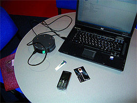На е-Finance-Russia 2007 сразу бросалось в глаза обилие стендов с поставщиками терминалов для приема платежей. Представители платежных систем и банков на их фоне были не очень заметны. Хотя вообще под одной крышей собрались весьма разнородные компании. Например, неподалеку от WebMoney располагался стенд «Гознака», который сейчас производит не только банкнотную бумагу, но и пластиковые «болванки» для кредиток. В общем, старается придерживаться финансовых тенденций. Что же касается WebMoney, то они, как я успел заметить, в гордом одиночестве представляли свой рыночный сегмент. Ни Яндекс.Деньги, ни MoneyMail на выставке не появились. Из процессинговых контор присутствовал только ChronoPay, представители которого искренне признались, что никаких значимых новостей они не припасли, разве что появилась возможность оплачивать Яндекс.Деньги и WM в едином интерфейсе.