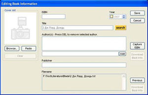 Несмотря на то что электронные книги занимают гораздо меньше места, чем привычные бумажные, при большом количестве электронной «печатной» продукции неизбежно возникает необходимость в каталогизации и управлении своей библиотекой. Неплохим помощником в этом деле может стать программа My Ebook Library. С ее помощью можно отсканировать каталоги и в считанные секунды рассортировать книги в соответствии с различными критериями. Приложение работает с форматами PDF, CHM, DOC, HTML, RTF, TXT, DjVu и PDB. Поддерживается поиск и загрузка обложек, выходных данных, информации об авторе и многое другое. Дообавляет удобств рейтинговая система, отслеживающая количество обращений к файлам.