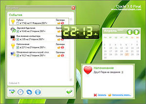 Настоящий эстет не удовольствуется стандартным набором системных компонентов, а постарается приукрасить свой десктоп с помощью различных цифровых «рюшечек». Именно к таким «приукрашалкам» можно отнести Clocki – заменитель системных часов, обычно лежащих в трее. Программа позволяет выводить на экран не только красочно оформленный циферблат, но и массу другой полезной информации – дату, день недели, напоминания о важных событиях. Кроме того, она умеет синхронизировать время через Интернет и запускать различные приложения. При этом собственно часы могут быть представлены как в аналоговом, так и в цифровом или футуристическом виде, чему способствует набор скинов.