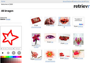 Поиск изображений по образцу уже не редкость, но сервис Retrievr, помимо возможности поиска фотографий на Flickr, "похожих на эту", предлагает и нечто нетривиальное. Воспользовавшись сверхаскетичным графическим редактором, пользователь может просто-напросто набросать эскиз искомого объекта, а Retrievr незамедлительно найдет изображения, хоть как-то напоминающие вашу "нетленку". Критериями выступает как форма объекта, так и его цвет. Алгоритм, конечно, оставляет желать лучшего в силу молодости проекта, в связи с чем этот сервис может служить, скорее, занимательной игрушкой, нежели серьезным инструментом, но иногда результаты поиска оказываются довольно удачными. Учитывая, что авторы проекта постоянно совершенствуют свою разработку, в будущем сервис может найти свое призвание.