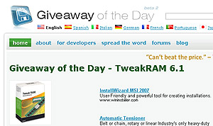 Хотя в России, по обыкновению, все программное обеспечение «бесплатное», многим пользователям было бы спокойнее (а с недавних пор и безопаснее) иметь на компьютере легальные копии программ. Тем интереснее заглянуть на сервис Giveaway of the Day. Каждый день там появляется программа, которую в течение суток (или более длительного срока – зависит от решения авторов софтины) можно загрузить и установить на свой компьютер абсолютно бесплатно, причем это будет полнофункциональная версия, а не какой-нибудь хитрый «триал». Для удобства отслеживания новых поступлений можно установить на своей домашней странице или веб-сайте соответствующий информационный блок – достаточно лишь скопировать подготовленный авторами сервиса код. Разумеется, есть и некоторые ограничения: обладатели загруженной программы не имеют права на бесплатную техподдержку, бесплатное обновление и могут использовать приложение только в некоммерческих целях.