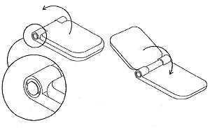 Современные телефоны-"раскладушки" нужно открывать и закрывать вручную, но вспомните, сколько восхищения вызывал слайдер Nokia 7110, у которого сдвигающаяся часть переводилась в открытое положение пружиной по нажатию кнопки. Автор заявки решил, что и для «раскладушек» этот способ вполне пригоден. Кнопку открывания и замок удобнее всего расположить сбоку на одной линии с осью, на которой находится открывающая пружина. Не уверен, впрочем, что это предложение имеет шансы быть запатентованным – идея довольно стара и наверняка уже реализована.