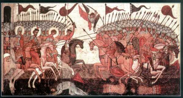 Битва новгородцев с суздальцами. (фрагмент). Икона начала 15в. Новгород. (Новгородский гос. объединён, музей-заповедник)