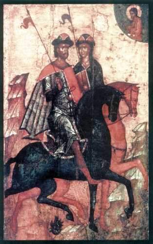 Свв. князья Борис и Глеб на конях (фрагмент). Икона 2-й пол. 14 века. Псков. (ГТГ)