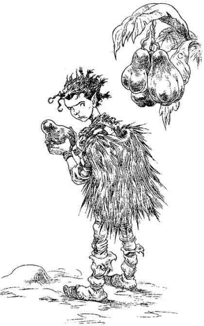 Наконец он добрел до дерева, на котором висели крупные спелые плоды пурпурно-алого цвета. Некоторые из них были с виду такими зрелыми и сочными, что, казалось, тонкая шкурка вот-вот лопнет и наружу брызнет золотистый густой сок. Прутик облизал губы. У него даже слюнки потекли, так ему захотелось попробовать соблазнительный, аппетитный, истекающий сладким нектаром фрукт. Он протянул руку и сорвал один из плодов.