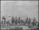 Фиг. 11. Окружной горный инженер в сопровождении казаков при объезде приисков дальней таши. Вид на восток с перевала из долины р. Таймендры в долину р. Тоноды