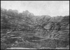 Возвращаясь на следующий день на тракт, мы проехали мимо скалистых холмов Буркат, также сложенных из гранита и выступающих ближе к тракту; это, невидимому, был окраинный выступ большого массива Арката, вытянутый с севера на юг. Живописные формы Арката, выделяющиеся среди однообразия мелкосопочника, наверно были связаны у кочевников с легендами, например, что стены центральной части, как будто сложенные из гигантских плит, являются сооружением каких-нибудь богатырей, их окопами, в которых они защищались от наступающих врагов, а отдельные странные скалы окаймления представляют камни, которыми защитники швыряли во врагов. Было бы интересно спросить у кого-нибудь об этом, но в посещенной нами восточной части Арката никакого населения не было, и вблизи почтового тракта мы вообще не видели киргизских аулов.