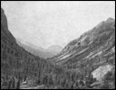 Фиг. 73. Оба склона долины р. Кара-гем в среднем течении. Вид вверх по долине. Вдали вершины Южно-Чуйских альп
