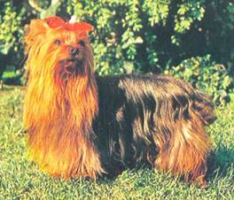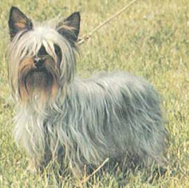 Описание. Это компактные, легкого сложения собаки. Средний рост 22,5 см. Вес от 4 до 5 кг. У этих собак средней длины широкая между ушей голова, прочная и типичная для терьеров, прочные челюсти, черная мочка носа, круглые темные глаза и V-образные уши. Тело слегка удлиненное, хвост купирован и поднят. Шерсть от 12 до 15 см длиной, тонкая, как шелк. Окрас голубой с огненно-рыжим или серый, голубой и огненно-рыжий.