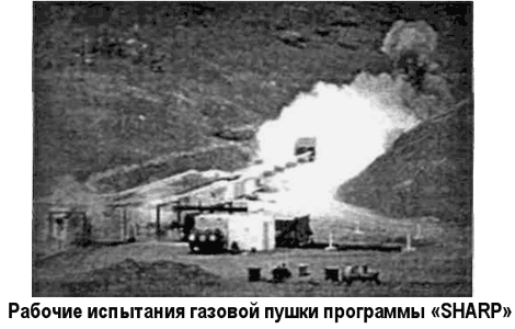 Есть еще одно правило для артиллериста-конструктора — скорость снаряда не может превышать скорость газов в стволе. Для того чтобы увеличить эту скорость (а следовательно, и высоту, и дальность полета снаряда), Хантер предложил заменить обычные продукты сгорания водородом, который имеет гораздо меньшую молекулярную массу и большую скорость. Исследуя архивы, американский конструктор установил, что в 1966 году инженеры НАСА уже испытывали маленькую водородную пушку, выстреливавшую снаряды со скоростью 2,5 км/с. На основе этой разработки Джон Хантер построил компьютерную модель двухкамерной газовой пушки, дульная скорость которой могла бы достигнуть 8 км/с. Проектом Хантера заинтересовались, и Лаборатория Лоренса получила деньги на строительство полноразмерной газовой пушки, предназначенной для запуска снарядов с космической скоростью; разработка получила название «Сверхвысотной исследовательской программы».