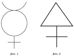 На мужском теле — знак сульфура (рис. 2). Это крест четырех элементов и равносторонний треугольник, поднимающийся над этим крестом.