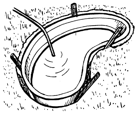 Строительство пруда с гибкой гидроизоляцией. Для строительства прудов с гибкой гидроизоляцией широко используют полихлорвиниловую пленку или бутилкаучуковую резину. При изготовлении пруда с пленочным покрытием дополнительно потребуется кусок флиса, песок, ватерпас, шнур, колышки и лопата.