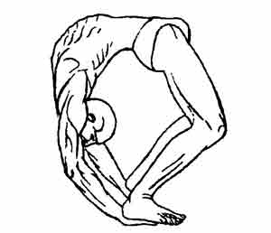 Здесь оно отсутствует, поскольку Чакрасана ввиду ее достаточно высокой сложности не относится к группе терапевтических упражнений, являясь асаной тренировочной. Начинающим ни в коем случае нельзя усердствовать чрезмерно, ибо последствия неправильного или слишком напряженного выполнения Ардха-чакрасаны и попыток при недостаточной тренированности выполнить Пурна-чакрасану могут быть весьма плачевными —для позвоночника, сердца, щитовидной железы и сосудов мозга.