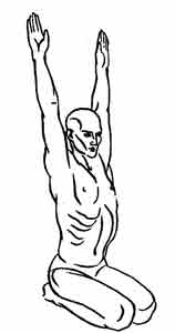 Чуть-чуть развести колени. Выпрямить спину, расправить плечи, развернуть грудную клетку, вытянуть вверх позвоночник, поднять руки над головой ладонями вперед и сделать вдох (рис.2 -5.1).